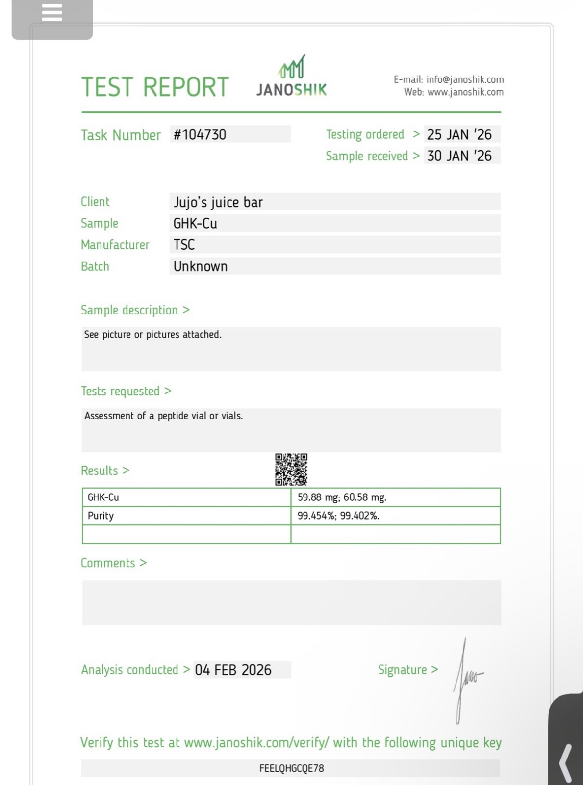 Every batch ships with a third-party Certificate of Analysis so you can verify purity before use.