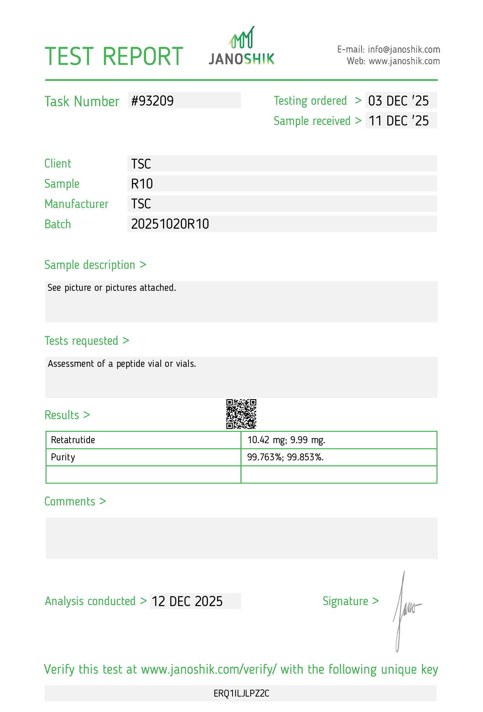 Every batch ships with a third-party Certificate of Analysis so you can verify purity before use.